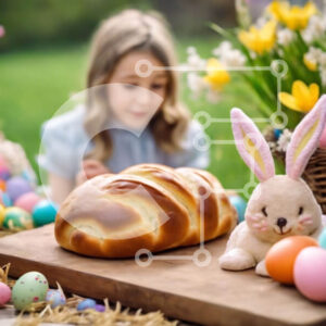 Intra Συλλεκτικό Ξύλινο Παζλ Plywood 4mm - Νεαρό κορίτσι που γιορτάζει το Πάσχα με το διακοσμημένο ψωμί και τα αυγά Σε Ξύλινο Κουτί - Διαστάσεις: 10x10 cm – 25 κομμάτια
