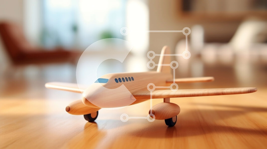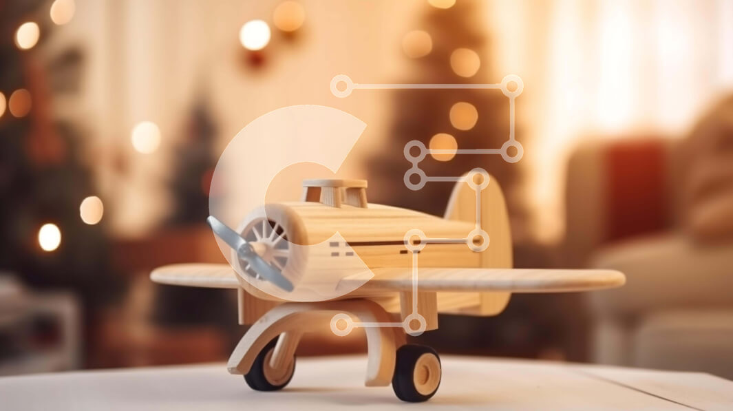 Intra Συλλεκτικό Ξύλινο Παζλ Plywood 4mm - Ξύλινο παιχνίδι αεροπλάνο στο τραπέζι με φόντο χριστουγεννιάτικο δέντρο Σε Ξύλινο Κουτί - Διαστάσεις Puzzle: 10x10 cm – 25 κομμάτια