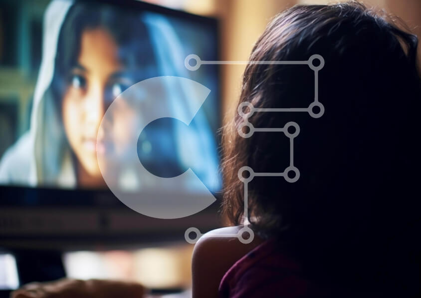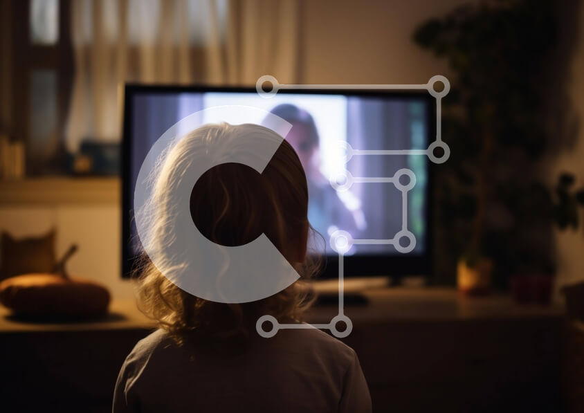 Intra Συλλεκτικό Ξύλινο Παζλ Plywood 4mm - Νεαρό κορίτσι που παρακολουθεί τηλεόραση Σε Ξύλινο Κουτί - Διαστάσεις Puzzle: 10x10 cm – 25 κομμάτια