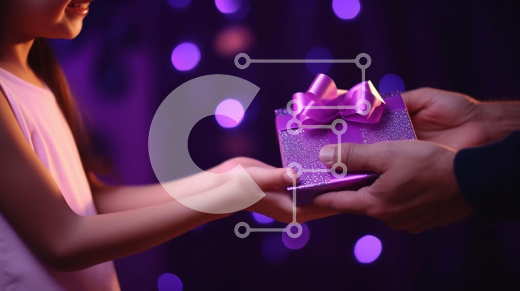 Intra Συλλεκτικό Ξύλινο Παζλ Plywood 4mm - Νεαρό κορίτσι που λαμβάνει ένα πορφυρό κουτί δώρου Σε Ξύλινο Κουτί - Διαστάσεις Puzzle: 10x10 cm – 25 κομμάτια