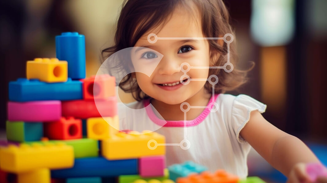 Intra Συλλεκτικό Ξύλινο Παζλ Plywood 4mm - Νεαρό κορίτσι που παίζει με πολύχρωμα δομικά στοιχεία Σε Ξύλινο Κουτί - Διαστάσεις Puzzle: 10x10 cm – 25 κομμάτια