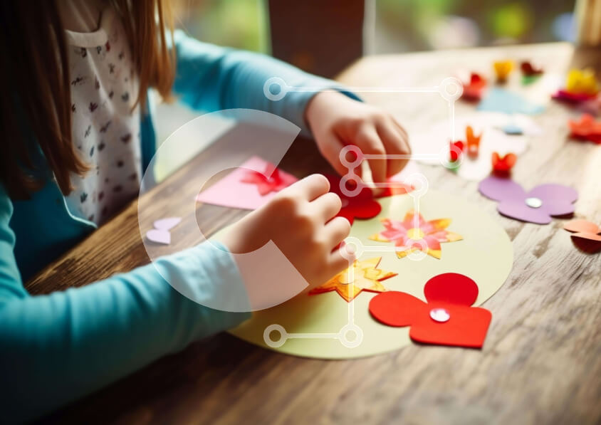 Intra Συλλεκτικό Ξύλινο Παζλ Plywood 4mm - Νεαρό κορίτσι που κατασκευάζει χειροτεχνίες από χαρτί Σε Ξύλινο Κουτί - Διαστάσεις Puzzle: 10x10 cm – 25 κομμάτια