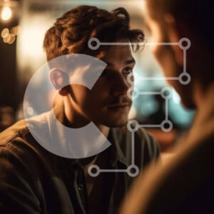 Intra Συλλεκτικό Ξύλινο Παζλ Plywood 4mm - Νεαρός άνδρας με δερμάτινο μπουφάν που κάθεται σε δωμάτιο με χαμηλό φωτισμό Σε Ξύλινο Κουτί - Διαστάσεις Puzzle: 10x10 cm – 25 κομμάτια