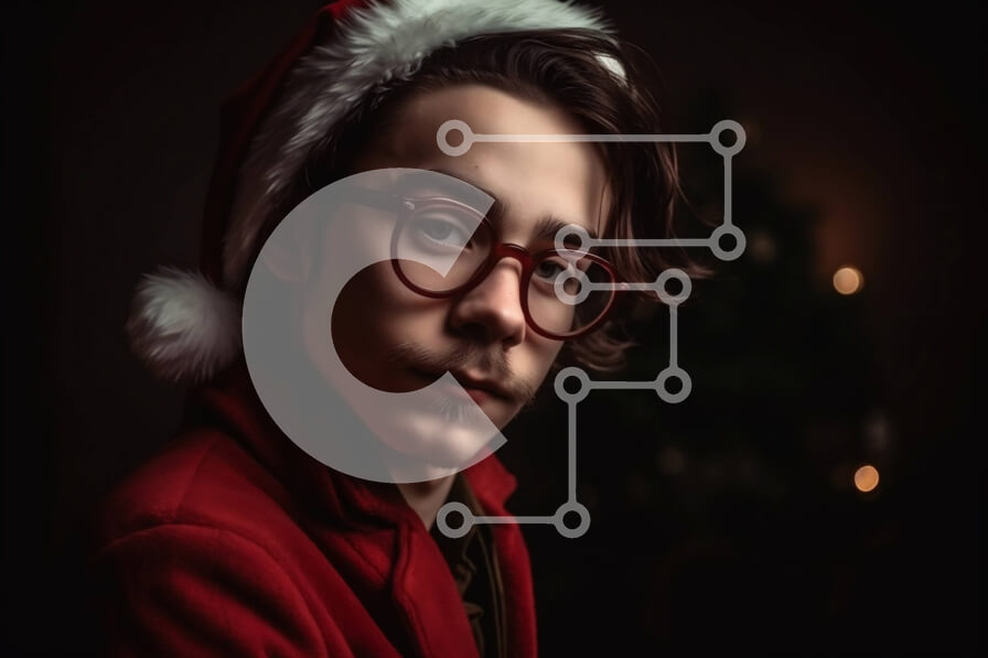 Intra Συλλεκτικό Ξύλινο Παζλ Plywood 4mm - Νεαρός άνδρας με γυαλιά και καπέλο Άγιου Βασίλη στο κόκκινο σακάκι Σε Ξύλινο Κουτί - Διαστάσεις Puzzle: 10x10 cm – 25 κομμάτια