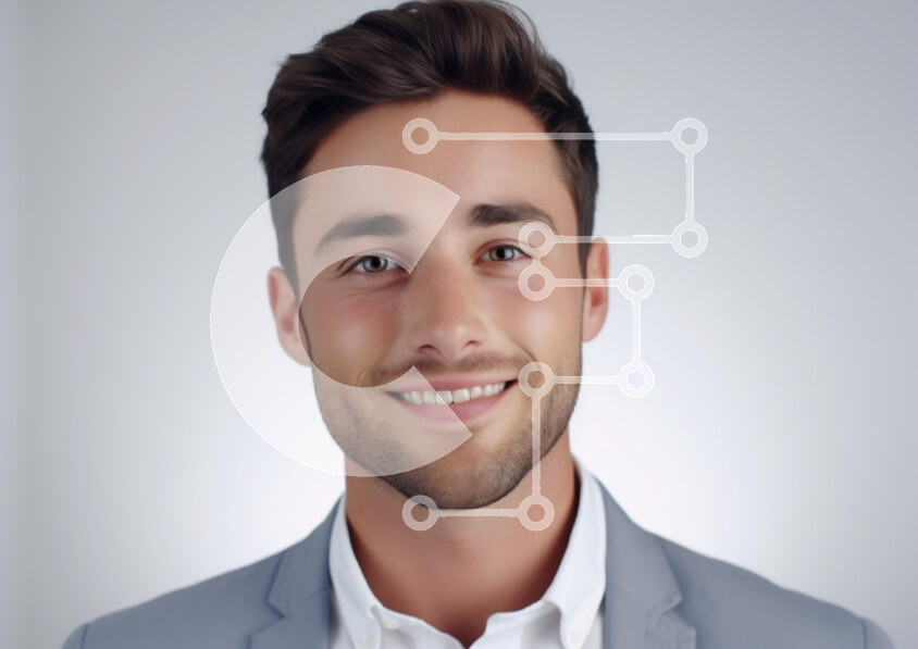 Intra Συλλεκτικό Ξύλινο Παζλ Plywood 4mm - Νεαρός άνδρας με ανοιχτό γκρι κοστούμι με φιλικό χαμόγελο Σε Ξύλινο Κουτί - Διαστάσεις Puzzle: 10x10 cm – 25 κομμάτια