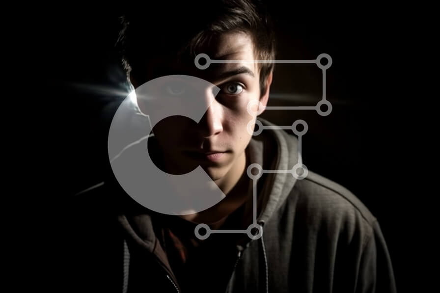 Intra Συλλεκτικό Ξύλινο Παζλ Plywood 4mm - Νεαρός άνδρας με μαύρο κουκούλα με σοβαρή έκφραση Σε Ξύλινο Κουτί - Διαστάσεις Puzzle: 10x10 cm – 25 κομμάτια