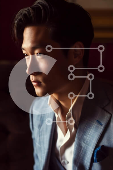 Intra Συλλεκτικό Ξύλινο Παζλ Plywood 4mm - Νεαρός άνδρας με μπλε κοστούμι ποζάρει με κλειστά μάτια Σε Ξύλινο Κουτί - Διαστάσεις Puzzle: 10x10 cm – 25 κομμάτια