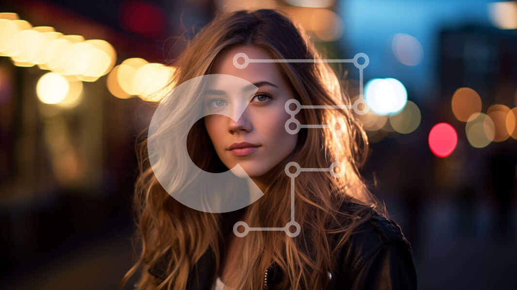 Intra Συλλεκτικό Ξύλινο Παζλ Plywood 4mm - Νεαρή γυναίκα με μακριά ξανθά μαλλιά που στέκεται στον αστικό δρόμο τη νύχτα Σε Ξύλινο Κουτί - Διαστάσεις Puzzle: 10x10 cm – 25 κομμάτια