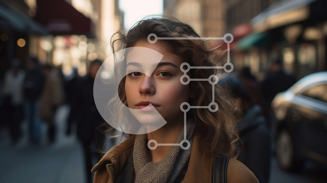 Intra Συλλεκτικό Ξύλινο Παζλ Plywood 4mm - Νεαρή γυναίκα με μαύρισμα μπουφάν που στέκεται στην πολυσύχναστη οδό της πόλης Σε Ξύλινο Κουτί - Διαστάσεις Puzzle: 10x10 cm – 25 κομμάτια