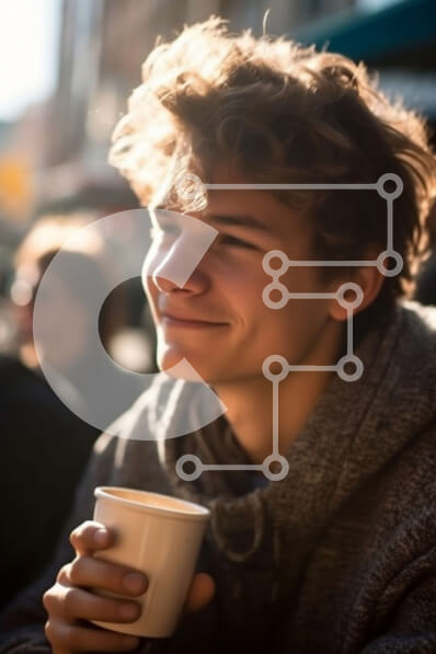 Intra Συλλεκτικό Ξύλινο Παζλ Plywood 4mm - Νεαρός άνδρας που απολαμβάνει ένα φλιτζάνι καφέ σε εξωτερικούς χώρους μια ηλιόλουστη μέρα Σε Ξύλινο Κουτί - Διαστάσεις Puzzle: 10x10 cm – 25 κομμάτια