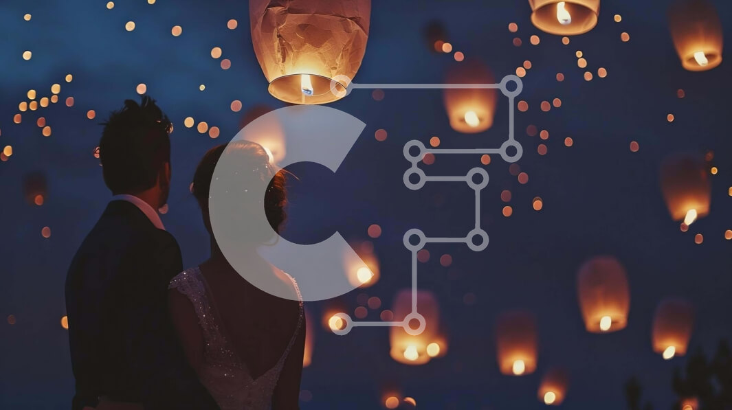Intra Συλλεκτικό Ξύλινο Παζλ Plywood 4mm - Νεόνυμφο ζευγάρι με χάρτινα φανάρια στον ουρανό Σε Ξύλινο Κουτί - Διαστάσεις: 10x10 cm – 25 κομμάτια