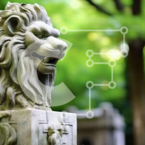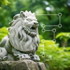 Intra Συλλεκτικό Ξύλινο Παζλ Plywood 4mm - Πέτρινο άγαλμα λιονταριού στο καταπράσινο τοπίο Σε Ξύλινο Κουτί - Διαστάσεις: 10x10 cm – 25 κομμάτια
