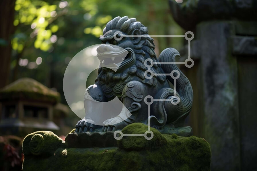 Intra Συλλεκτικό Ξύλινο Παζλ Plywood 4mm - Πέτρινο άγαλμα λιονταριού στον ανατολίτικο κήπο ή πάρκο Σε Ξύλινο Κουτί - Διαστάσεις: 10x10 cm – 25 κομμάτια