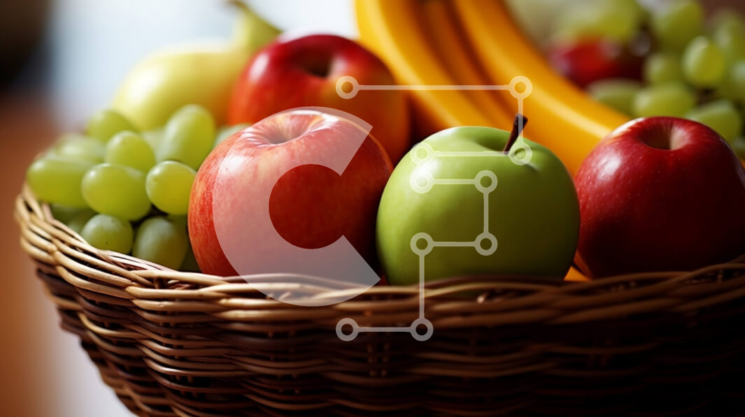Intra Συλλεκτικό Ξύλινο Παζλ Plywood 4mm - Νόστιμα φρέσκα φρούτα σε ένα καλάθι: Μήλα, μπανάνες, σταφύλια και άλλα Σε Ξύλινο Κουτί - Διαστάσεις: 10x10 cm – 25 κομμάτια