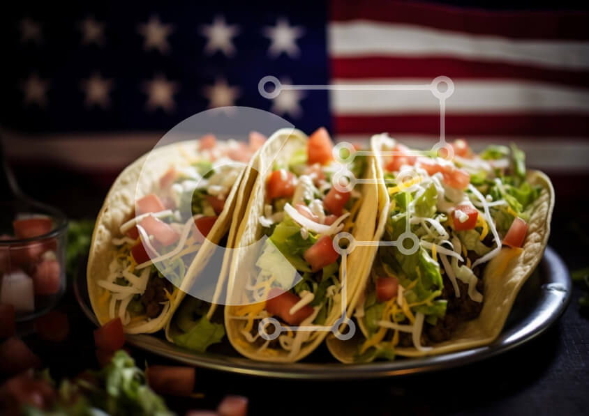 Intra Συλλεκτικό Ξύλινο Παζλ Plywood 4mm - Νόστιμα τάκος σε μεταλλικό πιάτο με φόντο αμερικανικής σημαίας Σε Ξύλινο Κουτί - Διαστάσεις: 10x10 cm – 25 κομμάτια