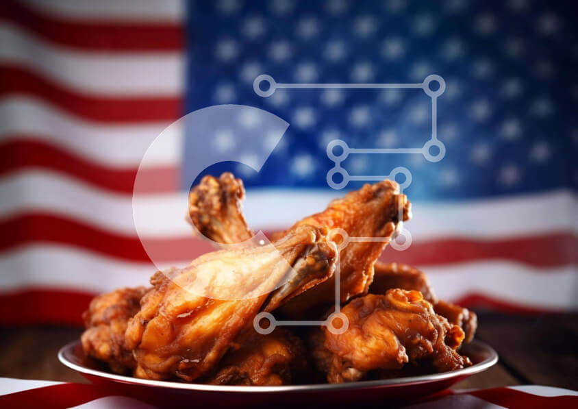 Intra Συλλεκτικό Ξύλινο Παζλ Plywood 4mm - Νόστιμα τηγανητά φτερά κοτόπουλου με φόντο αμερικανικής σημαίας Σε Ξύλινο Κουτί - Διαστάσεις: 10x10 cm – 25 κομμάτια