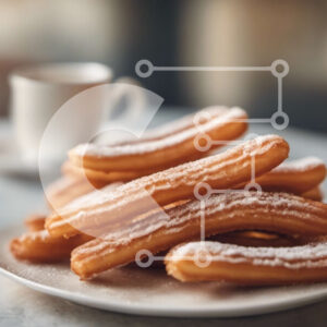 Intra Συλλεκτικό Ξύλινο Παζλ Plywood 4mm - Νόστιμα τσούρο με επικάλυψη ζάχαρης σε ένα άσπρο πιάτο Σε Ξύλινο Κουτί - Διαστάσεις: 10x10 cm – 25 κομμάτια