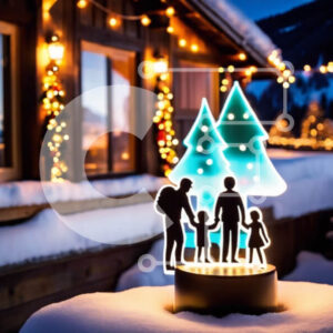 Intra Συλλεκτικό Ξύλινο Παζλ Plywood 4mm - Οικογενειακή σιλουέτα στο χιόνι με το φωτισμένο χριστουγεννιάτικο δέντρο Σε Ξύλινο Κουτί - Διαστάσεις: 10x10 cm – 25 κομμάτια