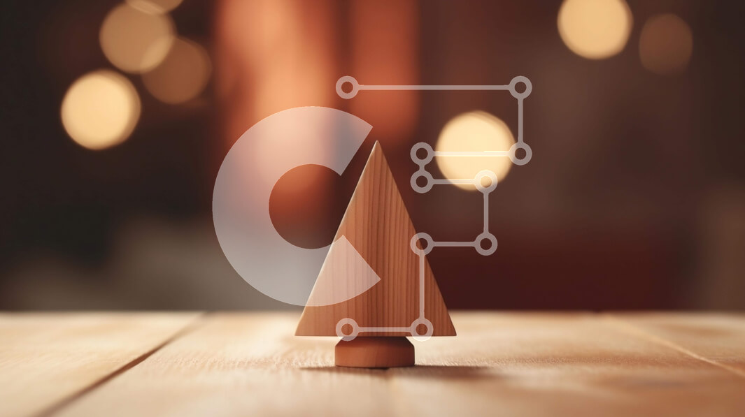 Intra Συλλεκτικό Ξύλινο Παζλ Plywood 4mm - Ξύλινο χριστουγεννιάτικο δέντρο σε ένα ημιτελές τραπέζι με θολό φόντο Σε Ξύλινο Κουτί - Διαστάσεις: 10x10 cm – 25 κομμάτια