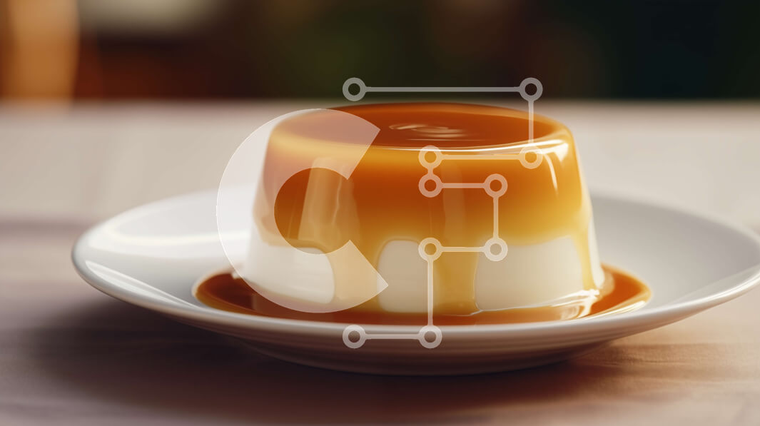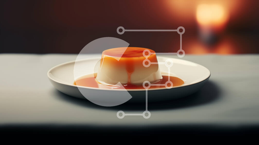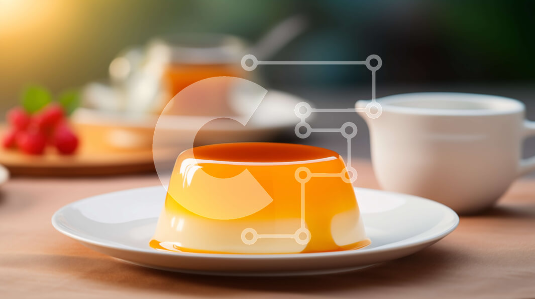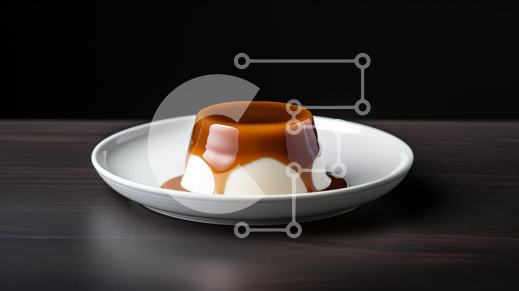 Intra Συλλεκτικό Ξύλινο Παζλ Plywood 4mm - Νόστιμο επιδόρπιο κρέμας πορτοκαλιού με σάλτσα καραμέλας σε λευκό πιάτο Σε Ξύλινο Κουτί - Διαστάσεις: 10x10 cm – 25 κομμάτια