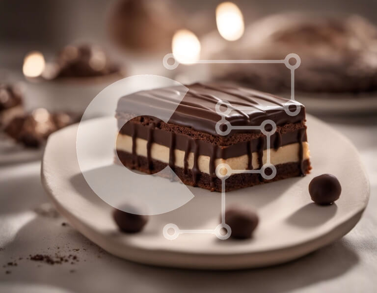Intra Συλλεκτικό Ξύλινο Παζλ Plywood 4mm - Νόστιμο επιδόρπιο με παγωμένο σοκολάτα και πασπαλίζουμε σε λευκό πιάτο Σε Ξύλινο Κουτί - Διαστάσεις: 10x10 cm – 25 κομμάτια