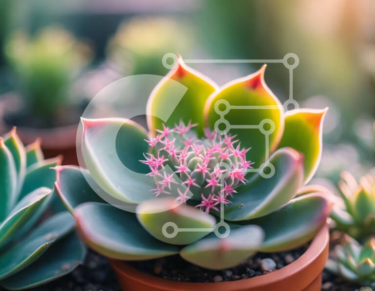 Intra Συλλεκτικό Ξύλινο Παζλ Plywood 4mm - Ομάδα παχύφυτων φυτών σε μικρές γλάστρες Σε Ξύλινο Κουτί - Διαστάσεις: 10x10 cm – 25 κομμάτια