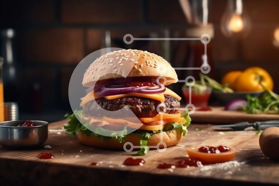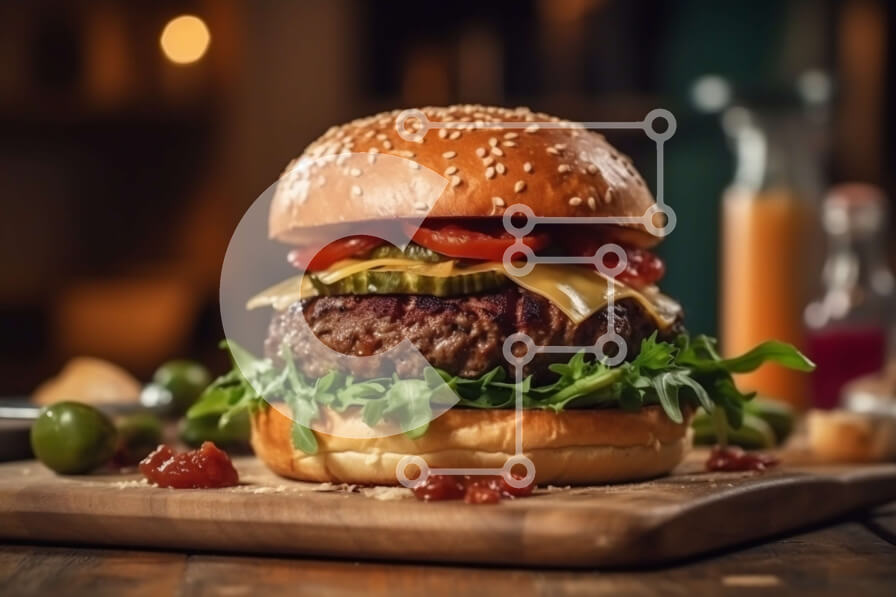 Intra Συλλεκτικό Ξύλινο Παζλ Plywood 4mm - Νόστιμο χάμπουργκερ με λιωμένο τυρί και φρέσκα λαχανικά Σε Ξύλινο Κουτί - Διαστάσεις: 10x10 cm – 25 κομμάτια