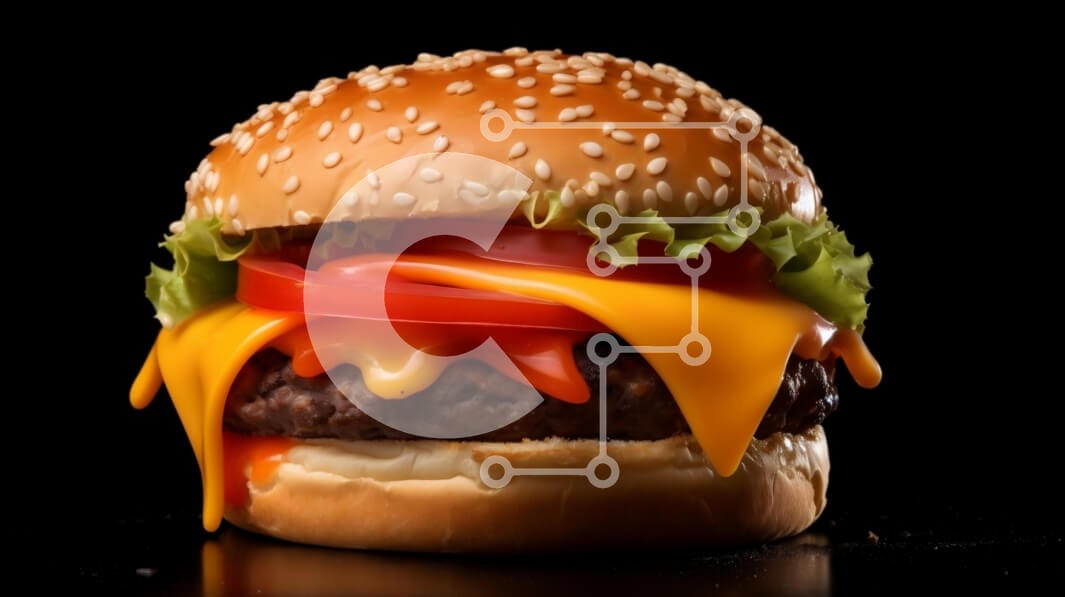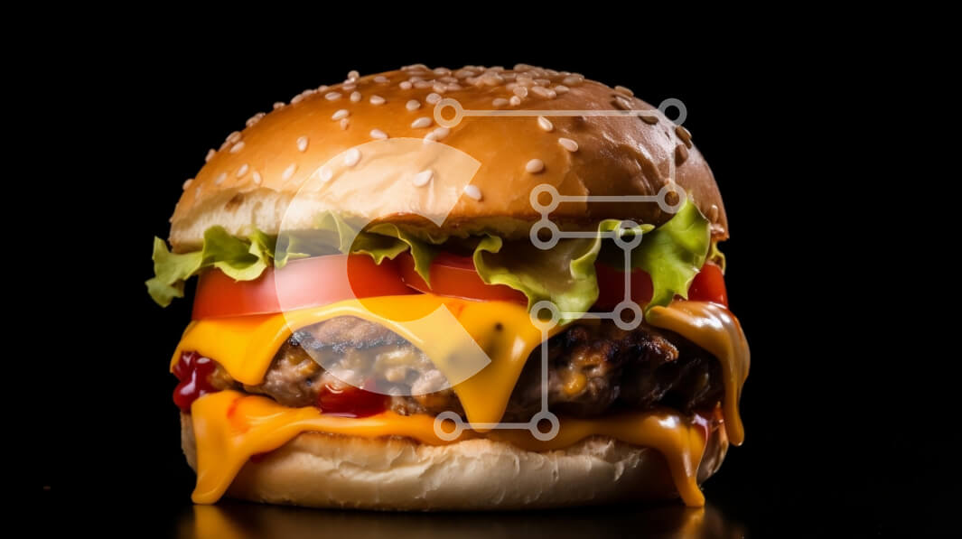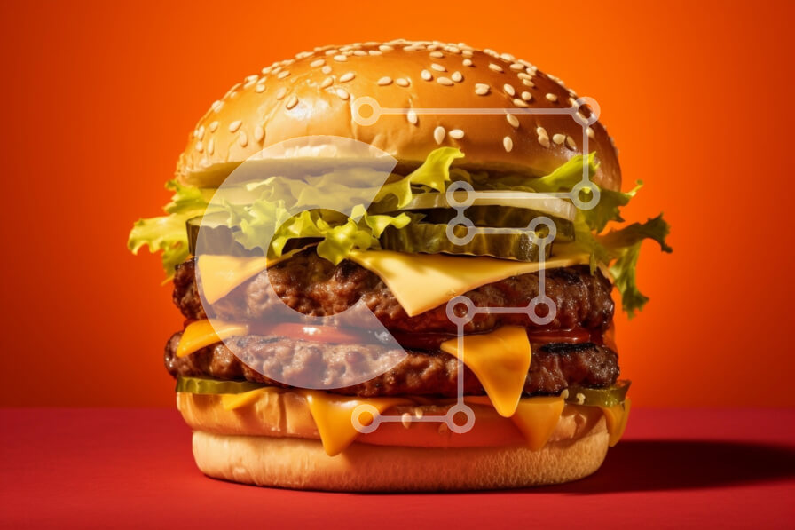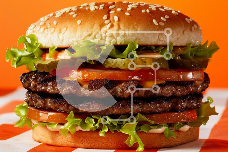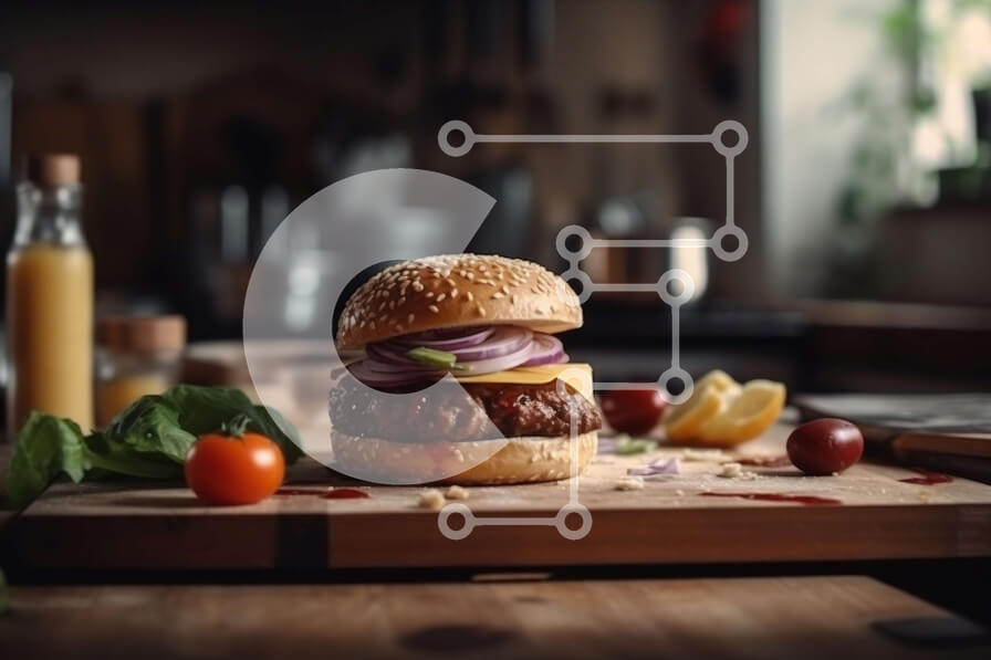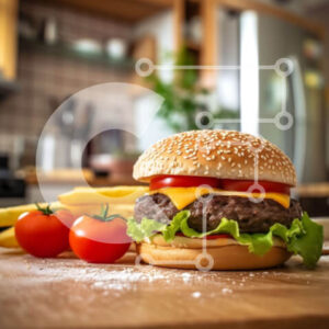 Intra Συλλεκτικό Ξύλινο Παζλ Plywood 4mm - Νόστιμο χάμπουργκερ με τυρί, μαρούλι και ντομάτα σε ξύλινο ξύλο κοπής Σε Ξύλινο Κουτί - Διαστάσεις: 10x10 cm – 25 κομμάτια