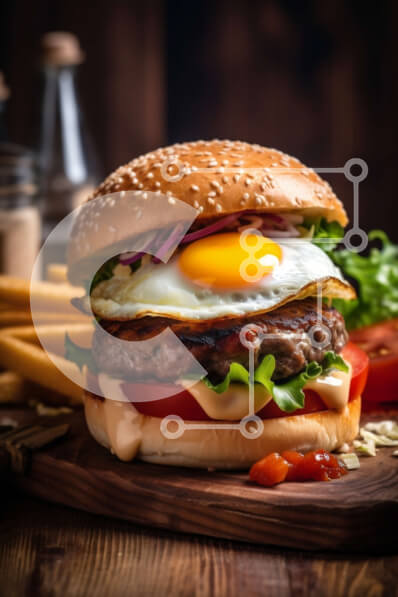 Intra Συλλεκτικό Ξύλινο Παζλ Plywood 4mm - Νόστιμο χάμπουργκερ με τηγανητό αυγό και τηγανιτές πατάτες Σε Ξύλινο Κουτί - Διαστάσεις: 10x10 cm – 25 κομμάτια