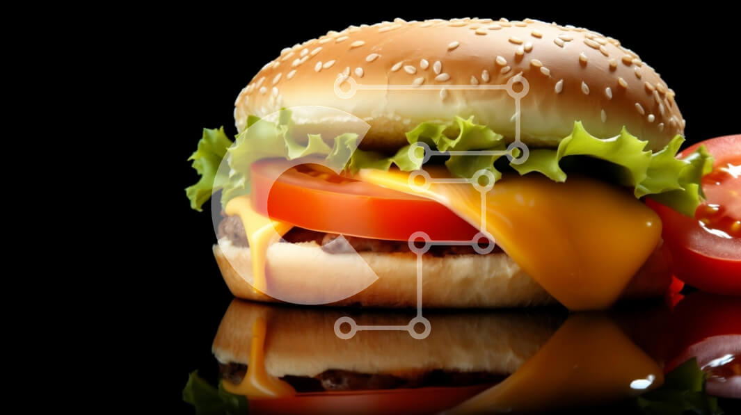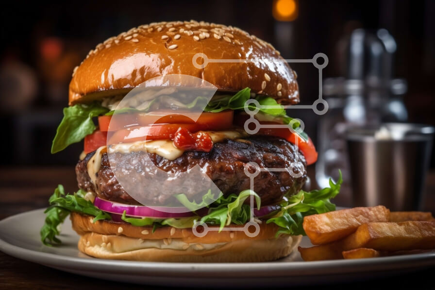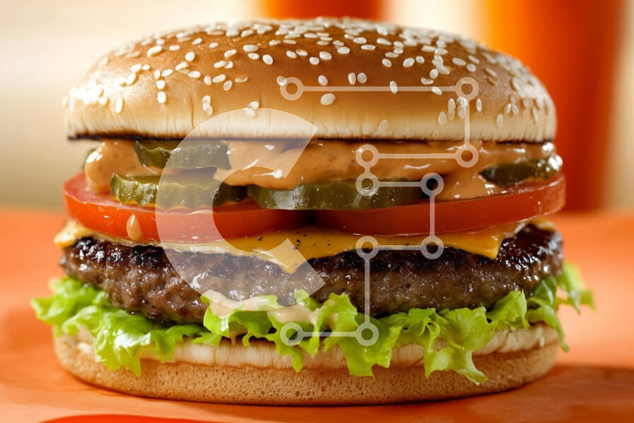 Intra Συλλεκτικό Ξύλινο Παζλ Plywood 4mm - Νόστιμο χάμπουργκερ με μαρούλι, ντομάτα και τυρί σε ξύλινο ξύλο κοπής Σε Ξύλινο Κουτί - Διαστάσεις: 10x10 cm – 25 κομμάτια