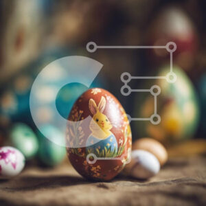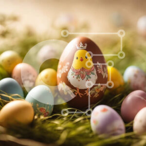 Intra Συλλεκτικό Ξύλινο Παζλ Plywood 4mm - Πασχαλινό αυγό με άσπρη κορδέλα και φόντο Bokeh Σε Ξύλινο Κουτί - Διαστάσεις Puzzle: 10x10 cm – 25 κομμάτια