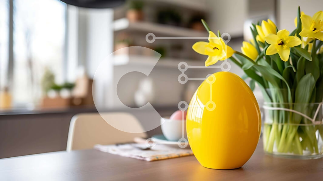 Intra Συλλεκτικό Ξύλινο Παζλ Plywood 4mm - Πασχαλινό αυγό και κίτρινα λουλούδια στο τραπέζι Σε Ξύλινο Κουτί - Διαστάσεις: 10x10 cm – 25 κομμάτια