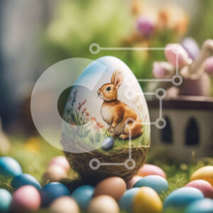 Intra Συλλεκτικό Ξύλινο Παζλ Plywood 4mm - Πασχαλινό αυγό με βαμμένο λαγουδάκι και πολύχρωμα αυγά στο γρασίδι Σε Ξύλινο Κουτί - Διαστάσεις: 10x10 cm – 25 κομμάτια