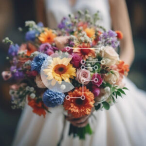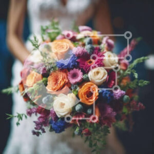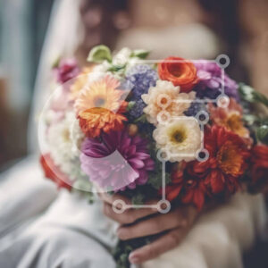 Intra Συλλεκτικό Ξύλινο Παζλ Plywood 4mm - Νύφη που κρατά πολύχρωμο μπουκέτο λουλούδια την ημέρα του γάμου της Σε Ξύλινο Κουτί - Διαστάσεις: 10x10 cm – 25 κομμάτια