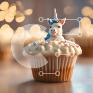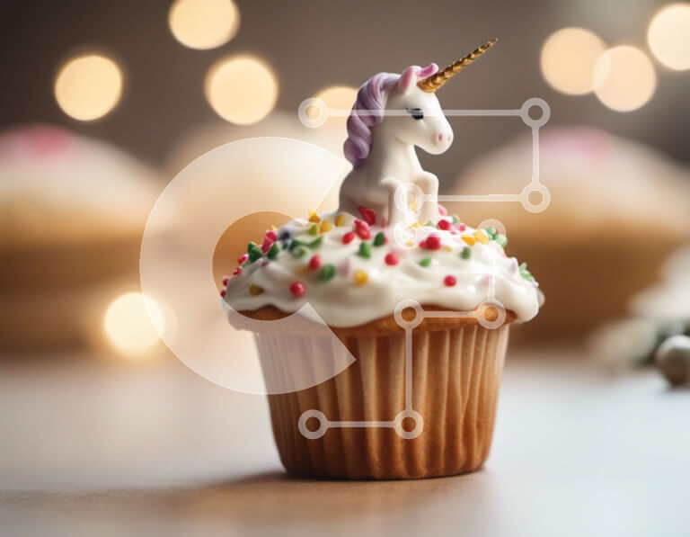 Intra Συλλεκτικό Ξύλινο Παζλ Plywood 4mm - Μονόκερος Cupcake με ψεκασμούς σε γιορτινό τραπέζι Σε Ξύλινο Κουτί - Διαστάσεις: 10x10 cm – 25 κομμάτια