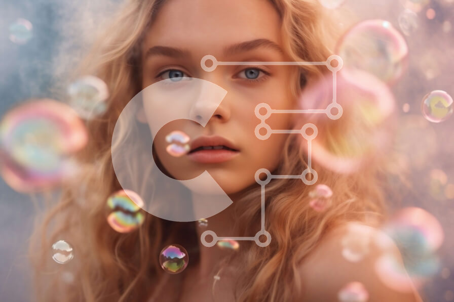 Intra Συλλεκτικό Ξύλινο Παζλ Plywood 4mm - Ξανθιά γυναίκα με μπλε μάτια μπροστά από το σύννεφο φυσαλίδων Σε Ξύλινο Κουτί - Διαστάσεις Puzzle: 10x10 cm – 25 κομμάτια