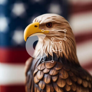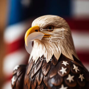 Intra Συλλεκτικό Ξύλινο Παζλ Plywood 4mm - Ξύλινο άγαλμα φαλακρού αετού με αμερικανική σημαία Σε Ξύλινο Κουτί - Διαστάσεις: 10x10 cm – 25 κομμάτια