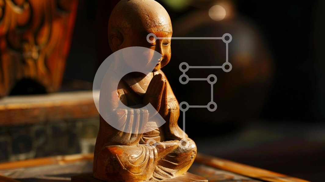 Intra Συλλεκτικό Ξύλινο Παζλ Plywood 4mm - Ξύλινο άγαλμα του ηλικιωμένου βουδιστή μοναχού σε στοχαστική στάση Σε Ξύλινο Κουτί - Διαστάσεις Puzzle: 10x10 cm – 25 κομμάτια