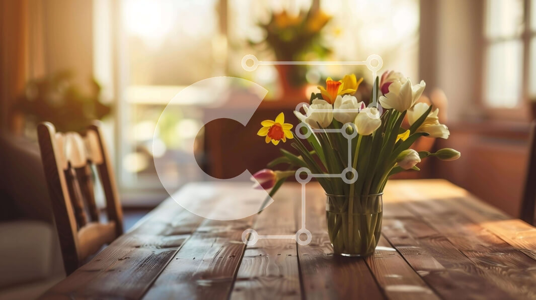 Intra Συλλεκτικό Ξύλινο Παζλ Plywood 4mm - Πολύχρωμα λουλούδια σε γυάλινο βάζο σε ξύλινη τραπεζαρία Σε Ξύλινο Κουτί - Διαστάσεις: 10x10 cm – 25 κομμάτια