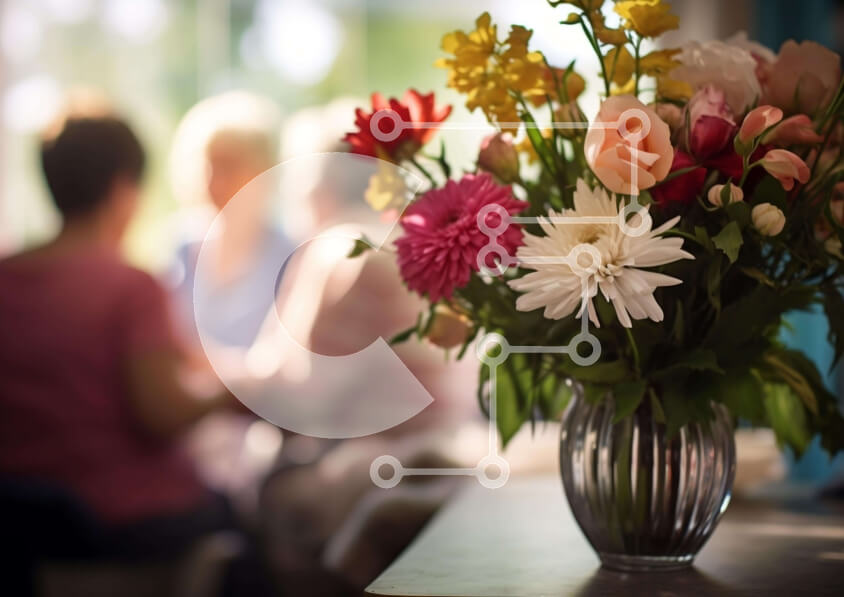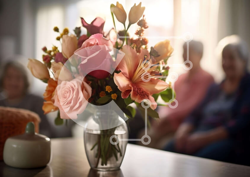 Intra Συλλεκτικό Ξύλινο Παζλ Plywood 4mm - Πολύχρωμα λουλούδια σε γυάλινο βάζο με ηλικιωμένες γυναίκες Σε Ξύλινο Κουτί - Διαστάσεις Puzzle: 10x10 cm – 25 κομμάτια