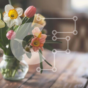 Intra Συλλεκτικό Ξύλινο Παζλ Plywood 4mm - Πολύχρωμα λουλούδια σε γυάλινο βάζο στο τραπέζι Σε Ξύλινο Κουτί - Διαστάσεις Puzzle: 10x10 cm – 25 κομμάτια