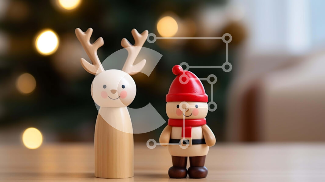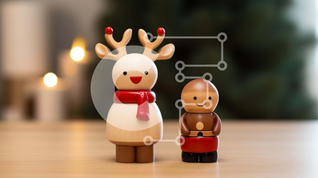 Intra Συλλεκτικό Ξύλινο Παζλ Plywood 4mm - Ξύλινα ειδώλια ταράνδων και ξωτικών που γιορτάζουν τα Χριστούγεννα Σε Ξύλινο Κουτί - Διαστάσεις: 10x10 cm – 25 κομμάτια