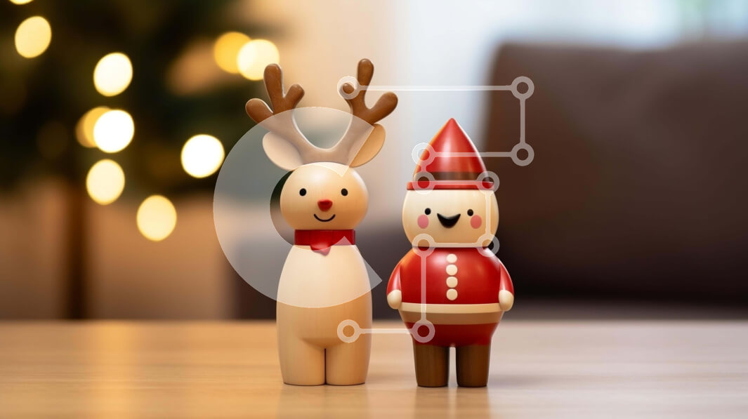 Intra Συλλεκτικό Ξύλινο Παζλ Plywood 4mm - Ξύλινα ειδώλια ταράνδων και ξωτικών σε φόντο χριστουγεννιάτικου δέντρου Σε Ξύλινο Κουτί - Διαστάσεις: 10x10 cm – 25 κομμάτια