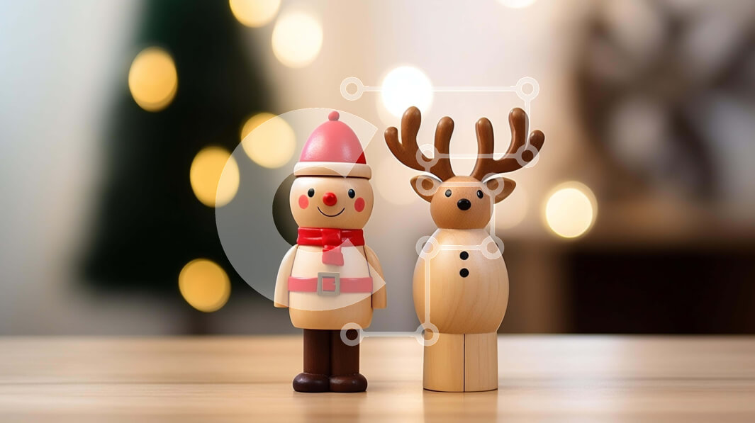 Intra Συλλεκτικό Ξύλινο Παζλ Plywood 4mm - Ξύλινα ειδώλια ταράνδων και χιονάνθρωπου σε ένα γιορτινό τραπέζι Σε Ξύλινο Κουτί - Διαστάσεις: 10x10 cm – 25 κομμάτια