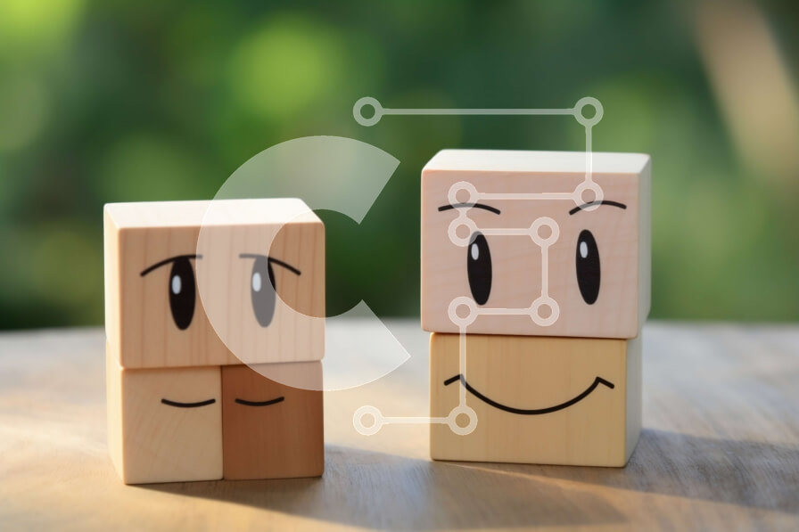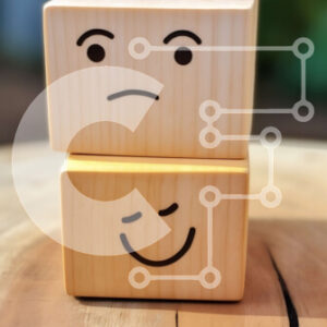 Intra Συλλεκτικό Ξύλινο Παζλ Plywood 4mm - Ξύλινα μπλοκ με χαμογελαστά πρόσωπα σε ένα ξύλινο τραπέζι Σε Ξύλινο Κουτί - Διαστάσεις: 10x10 cm – 25 κομμάτια