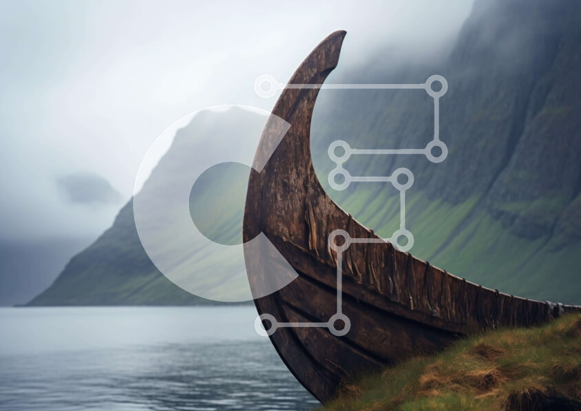 Intra Συλλεκτικό Ξύλινο Παζλ Plywood 4mm - Ξύλινη βάρκα Viking με κεφάλι σε σχήμα κουκουβάγιας στη λίμνη Mountain Σε Ξύλινο Κουτί - Διαστάσεις: 10x10 cm – 25 κομμάτια