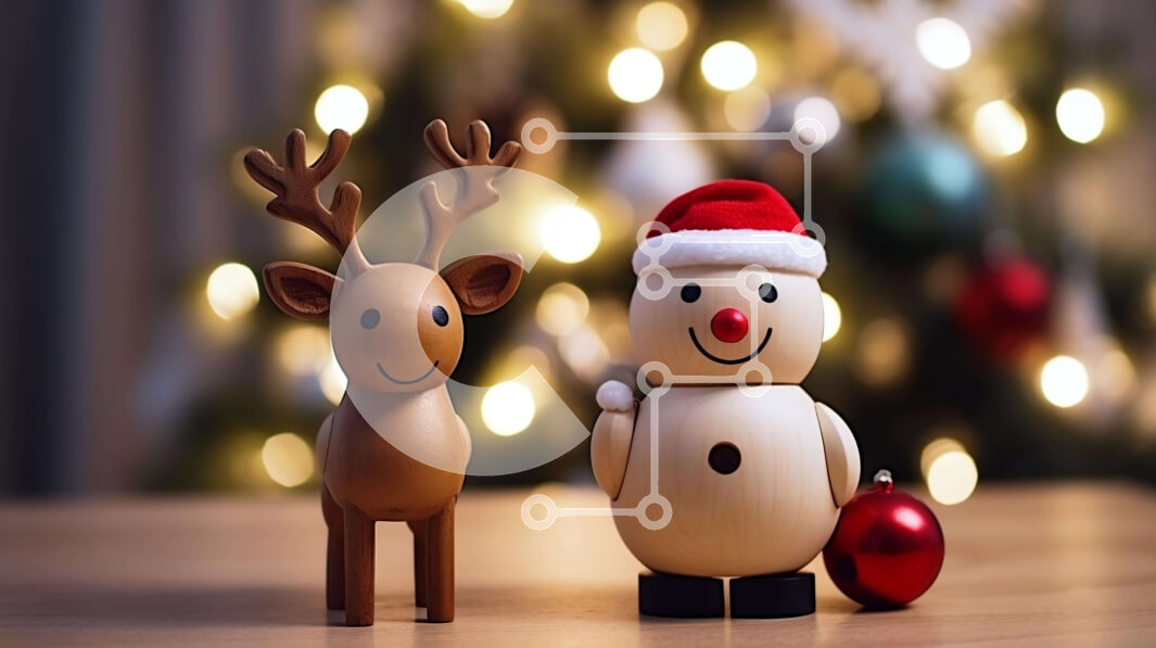 Intra Συλλεκτικό Ξύλινο Παζλ Plywood 4mm - Ξύλινα Χριστουγεννιάτικα ειδώλια σε τραπέζι με τεχνητό χριστουγεννιάτικο δέντρο Σε Ξύλινο Κουτί - Διαστάσεις: 10x10 cm – 25 κομμάτια