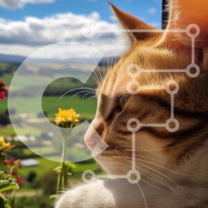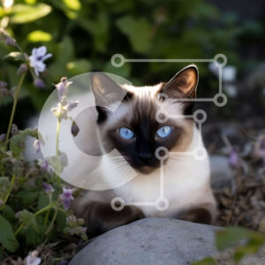 Intra Συλλεκτικό Ξύλινο Παζλ Plywood 4mm - Όμορφη εικόνα μιας γάτας που κάθεται σε έναν βράχο που περιβάλλεται από λουλούδια Σε Ξύλινο Κουτί - Διαστάσεις: 10x10 cm – 25 κομμάτια