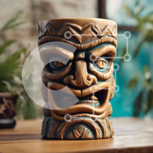 Intra Συλλεκτικό Ξύλινο Παζλ Plywood 4mm - Ξύλινη κούπα Tiki με θυμωμένο πρόσωπο στο τραπέζι Σε Ξύλινο Κουτί - Διαστάσεις: 10x10 cm – 25 κομμάτια