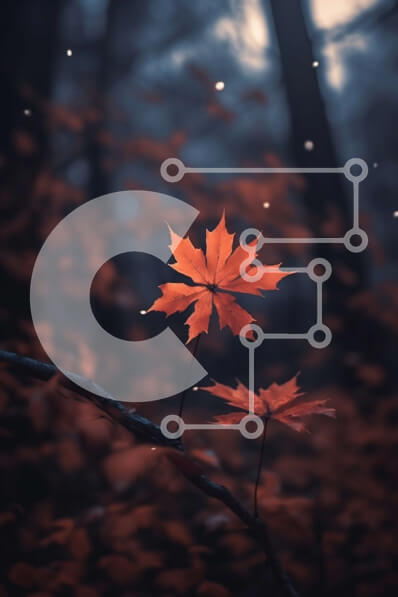 Intra Συλλεκτικό Ξύλινο Παζλ Plywood 4mm - Όμορφη εικόνα ενός κόκκινου φύλλου σφενδάμου σε ένα κλαδί σε ένα σκοτεινό δάσος τη νύχτα Σε Ξύλινο Κουτί - Διαστάσεις: 10x10 cm – 25 κομμάτια